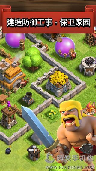 2、使用全新兵种进行对战,包括狂暴野蛮人、隐秘弓箭手、巨人拳击手、炸弹兵、加农炮战车以及新英雄——战争机器。