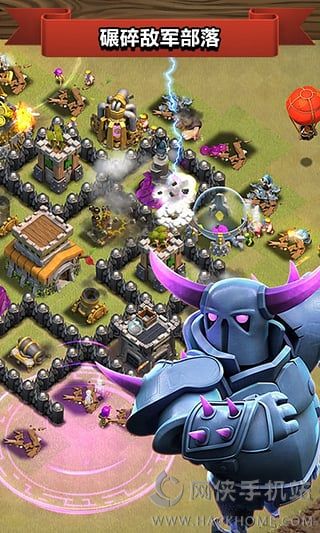 2、使用全新兵种进行对战,包括狂暴野蛮人、隐秘弓箭手、巨人拳击手、炸弹兵、加农炮战车以及新英雄——战争机器。