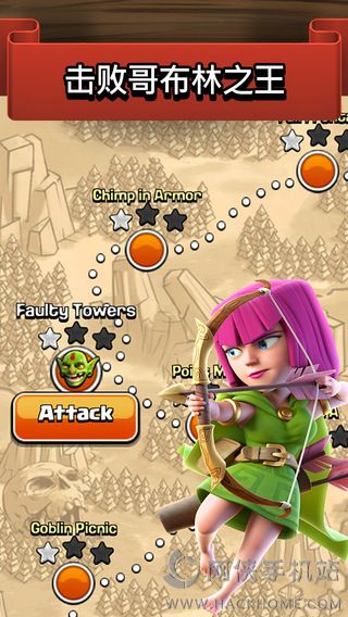 2、使用全新兵种进行对战,包括狂暴野蛮人、隐秘弓箭手、巨人拳击手、炸弹兵、加农炮战车以及新英雄——战争机器。