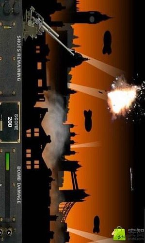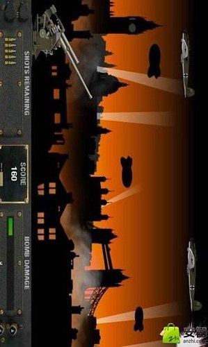 导弹防空保卫战,你作为一名高射炮指挥官,请你尽量多的击落敌国的飞机保卫你的家园吧.如何开始:游戏加载完毕点击start即可开始游戏.游戏目标:合理操作控制高射炮打下更多的战斗机吧!重演二战时的辉煌战史,圆满完成任务.