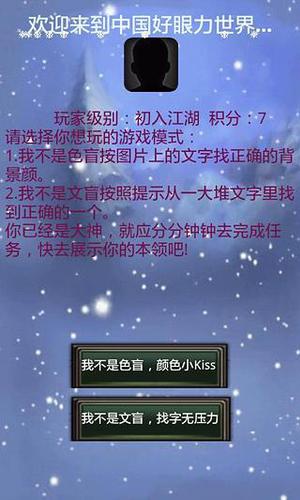 1.中国好眼力是由音林静听开发的第一款以学习文字和考验眼力的游戏.2.该游戏集成很多常见的文字但容易识别错误的相识字.3.集成了颜色与文字的良好搭配考察玩家的眼力.4.玩家还可以将战绩分享给自己的好友。5.该软件具有玩着快乐,且具有学习的意义,希望大家支持。6.如果游戏中出现的任何不友好的界面,欢迎您的评论,我们会及时做出完美。