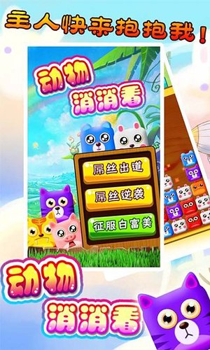 消灭动物,类似于PopStar,一款极易上瘾的消除类游戏。游戏规则简单,在今天种类繁多的消除类游戏当中它依然是如同它的名字一般,是消除类游戏当中一颗闪耀的明星。游戏以可爱的动物为主题,加上动感和快节奏的背景音乐,让你赏心悦目,无法放手。玩法:点击2个或者更多的动物即可获得分数,每关有目标分数,达到后即可过关。提示:--同时消去的动物数量越多,分数就越高--最后剩余单个的的数量月少,获得的奖励的越多。--仔细观察动物的布局,找出最好的消除顺序,可以帮助你获得更多的分数。