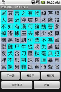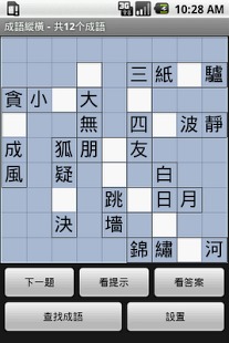《成语纵横繁体版》是中文版的CrossWord和WordSearch游戏。本游戏能从1万多成语中随机生成“找成语”或“填成语”游戏。在游戏过程中,可参考提示。在做找成语游戏时,如果一个成语所有的字全被正确找出,字的背景色自动变成绿色,表示该成语已被找出。