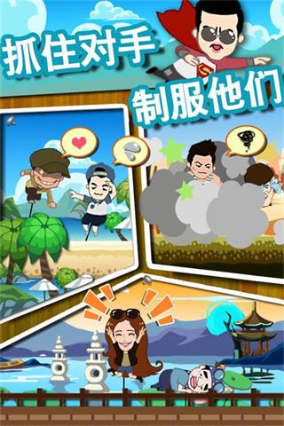最人气火爆的“撕名牌大战”即将拉开帷幕,有美美的Baby,贱贱的贱人曾,能力者大黑牛,萌萌的蓝蓝,弱弱的宝宝,帅帅的护花使者,邓感超人。游戏中你可以扮演七位跑男兄弟团中的任何一位通过简单的指压板运动,即可撕掉对手名牌,OUT对方。同时别忘了保护美美的Baby哦!