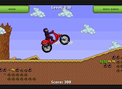 《忍者赛车NinjaRace-Motorcrossgame》是一款赛车类型的体育游戏。作为身怀绝技的忍者,你要有细致的判断和冷静的思考。游戏中需要你进行跳跃,翻转等特殊动作,你必须要把握好动作的时机。游戏拥有11关,当你到达后半段关卡时候,游戏会变得更为艰难。
