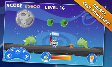 免费享受紧张刺激的Android版动作游戏!快来试试这款紧张刺激的动作游戏!享受MoMinis出品的又一杰作!小伯特和爸爸妈妈一起去享受家庭度假。满心欢喜、高兴过头的他怎么也没想到会遇到糟糕透顶的厄运!在混乱嘈杂的空间站小伯特找不到爸爸妈妈了…只剩他孤零零一个人…可怜的小伯特发现自己周围到处都是危险的外星怪物,如讨厌的跳跳怪和邪恶的水怪,他们不停地朝他吐黏稠的液体,想要把他抓起来!小伯特的生命危在旦夕!!!幸运的是勇敢的小伯特发现了一套闪闪发光、酷劲十足的钢铁盔甲,这套盔甲还有特殊功能,他急忙钻了进去。瞧!一个新的太空战士诞生了,他就是终结者伯特!眼前最大的问题是-您具备太空战士的胆识吗?您能帮助小伯特消灭这些恐怖的外星生物吗?朝他们射击,打垮他们,让银河系重获和平……游戏说明-使用操纵杆移动和跳跃-双击某一方向以冲刺-长按以滑行-点击开火按钮进行射击游戏亮点-4种敌人(跳跳怪、劈尸魔、食人鱼和水怪)-20个精彩游戏关卡-20个充满挑战的任务,额外奖赏硬币-星章(Stars)系统让游戏更精彩-创新的连击系统