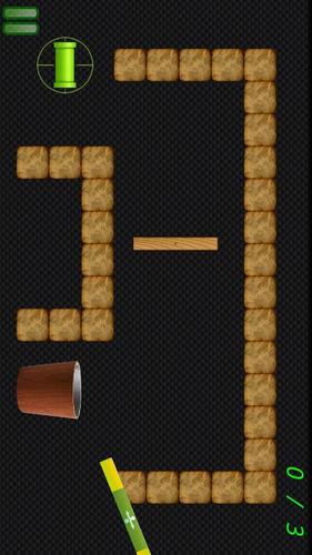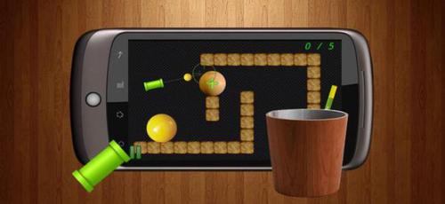 跳弹球一款简单但很有趣的模拟真实物理射击、弹球类的游戏。它会唤起你童年玩弹子球的美好回忆。你只需要用手指在屏幕上滑动来控制子弹的方向和速度,让子弹经过反弹(一定不能让子弹撞击到小炮身上,不然的话小炮就会爆炸而导致游戏失败),最终设法进入小桶。如果你感觉这样有些困难的话,我们特意提供了一个能来回移动和旋转的木板来帮助你。用法:点中木板中心拖动来改变它的位置;点击木板两端并进行旋转来改变它的角度。
