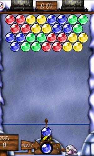 玩法:游戏玩法非常简单,主要是通过发射台发射泡泡,当有3个或以上的同色泡泡相连,这些泡泡将会掉落.如果这些泡泡掉落之后造成其他连接的异色泡泡失去挂点,则这些异色泡泡也会一同掉落.泡泡飞行途中与其他泡泡相触,即被黏附,并停止运动.位置由入射角和原来静止的泡泡位置共同决定.可利用两侧垂直的墙壁进行反弹,这是越过障碍击打上层泡泡的重要技巧.泡泡下压越过下方的“警戒线”就算失败,所以一定要眼明手快哦~