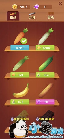 3、随着你的分数越来越高,切割的水平提升,我们可以解锁到更多的道具哦。