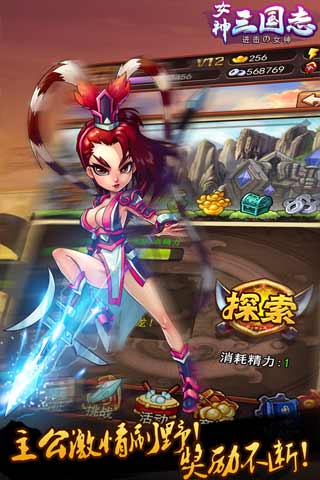 《女神三国志》是一个三国题材的卡牌对战游戏,玩家在游戏中扮演一位主公,通过带领属于自己的武将及文臣,通过不同的玩法获得不同的资源、武将和装备。玩家的目的是提升自己军团的战斗力,然后完成不同的战役及相应活动来达到统一中国所有的版图。故事背景:东汉末年,汉灵帝无能,董卓荒淫无度,妄图搜集天下所有美女,导致了各地的斗争蜂拥而起,包括各边疆蛮族不断造反,国家动荡。