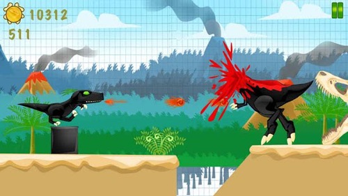 《血腥小恐龙BloodyDino》是一款简单好玩的动作类游戏。游戏中玩家将控制自己暴怒的小霸王龙去屠杀那些挡住自己前进道路的可恶的恐龙们,然后一步步奠定自己在恐龙中的霸主地位。【游戏特色】-简单的黑色恐龙造型-动感的音乐-有趣的机枪跳跃双操作