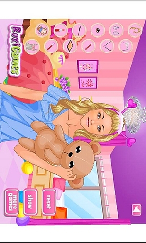 游戏说明:你和你的闺蜜们都期待已久的要开个睡衣派对,现在终于有机会了,好好打扮一下吧!!相信这一定会是一个难忘的夜晚。操作方法:游戏加载完毕后点击play即可开始游戏,点击饰品进行化妆、装扮,点击右下角的show展示。