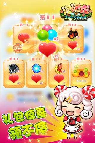 开启梦幻泡泡之旅~~《泡泡龙2015》狂卷来袭!该游戏为一款有趣、好玩的休闲类泡泡消除游戏。独具匠心的关卡设计、DIY魔法炮技能、会卖萌的羊宝宝、爽快的道具体验、清新愉快的配音,诱惑的道具领取,颠覆以往常规玩法,带来了与众不同的新版泡泡龙,绝对让您在空闲时间爱不释手。