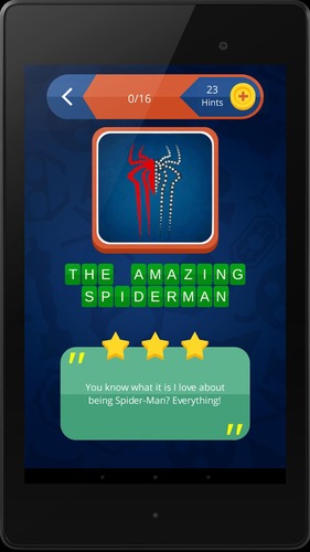 MOVIE测验:你猜电影谜(只有英文版本)你是一个真正的好莱坞电影“情人???然后发挥极致MOVIE测验难题与挑战你的整体电影知识!这让影片测验将挑战你用手工设计,富有想象力和美丽的极简海报命名大片。只有骨灰级电影爱好者将设法通过所有的水平。证明给你的朋友,不管你是一个电影新手还是好莱坞的专家。MOVIE测验特点:?数以百计的惊艳,美丽的极简主义电影的海报。并有更多的惊喜!?多层次的复杂挑战你的好莱坞大片“的知识。有时候,你就可以看一些著名演员和女演员或著名的道具和/或商标或标志后马上猜出来的电影。?通过Facebook分享给您的朋友得到帮助。?获取提示,或揭晓答案,并移动到下一个难题。?有趣,上瘾的游戏。也非常适合一个完美的聚会和你的朋友在家里还是在党。游戏信息:通过查看极简海报猜电影。如果您遇到问题,然后使用提示可用,或“解决它”选项移动到下一个难题..?送1每次提示你解决3的时间-在-一-一排。?提示1-影片的简要说明,生产琐事或剧情梗概。?提示2-向您展示一些字母是解决方案的一部分揭示不完整的答案。?解决它-显示正确的答案和移动到下一个难题。你将被分别充电至1,2和5的提示,当使用上述的提示。如果你与所有常规标识测验和益智游戏完成后,再下载和开始玩这个免费电影琐事游戏现在!我们确信,你将有尽可能多的乐趣解决它,因为我们没有做它。