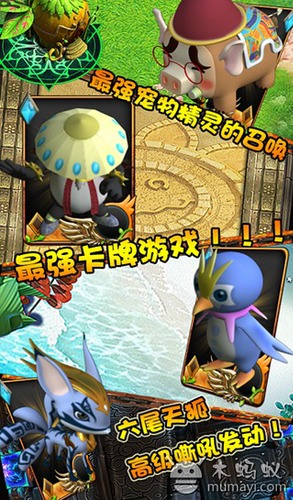 皮卡丘十万伏特!多么熟悉的声音!卡牌式宠物小精灵游戏正式登陆安卓平台,多种知名宠物进驻,以及您将有机会培养出一只真正的"功夫熊猫"并带领伙伴勇闯虎穴;烈火焚原!多样的新宠物造型,多变的玩法,华丽的进化,绚丽的超必杀技,万年大反派鹤仙人也会带着飞行大军出演反派角色!这一切的一切尽在手机版宠物小精灵-萌宠乐园!2013不容错过的精彩游戏!