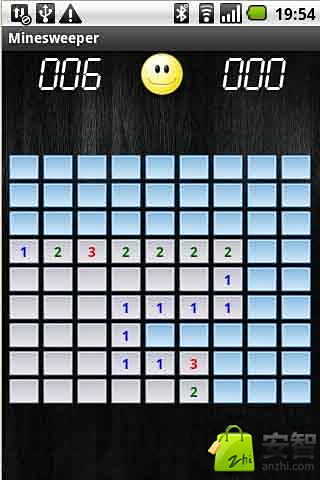 游戏规则:1.把所有非地雷的格子揭开即胜利;踩到地雷格子游戏失败.2.通过单击即可挖开方块.如果挖开的是地雷,则您输掉游戏.3.如果挖开方块上出现数字,则表示在其周围的八个方块中共有多少颗地雷.4.在您认为可能有地雷的方块上长按可对该方块插上旗子进行标记.6.如果点开的格子为空白格,即其周围有0颗雷,则其周围格子自动打开;
