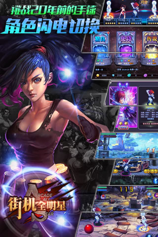 真正体验一把指尖上的格斗快感!和格斗女神一起并肩作战,驰骋街机世界。更有激爽万分的无限生存模式与BOSS变身系统,时光记忆就此被唤起。横版2D格斗游戏《街机全明星》震撼来袭。多名格斗家任你指挥,一场战斗,街机人物齐上阵,满足玩家战斗欲望。暴打连击,酷炫无比,热血情怀完全释放。丰富的任务系统,多元化的技能组合,感官世界新体验!你,还在等什么?