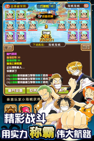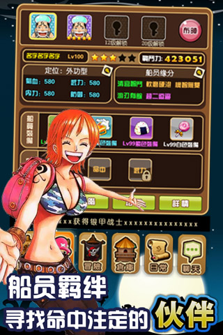 【游戏简介】《海贼王挂机》是一款以超人气动漫《海贼王》为题材,用Q版风格配合新奇多样的玩法的经典放置类游戏,以高度还原《海贼王》的故事发展线路,超高水准的重现了原作中的海贼世界,以超简单的玩法让玩家解放。经典的剧情副本,耳熟能详的BOSS,惊艳全场的装备,海贼世界中丰富多彩的伙伴,将满足所有游戏玩家的需求,让他们随时随地都能体验到最畅快最轻松的英雄战斗。