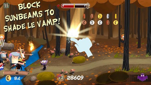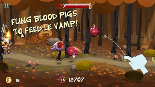 《古怪吸血鬼LeVamp》是一款有趣的休闲游戏。在这明媚的一天,小小的LeVamp只想像普通小男孩那样出去玩;不过当然,其他小男孩不是吸血鬼!你的任务,就是要引导和保护年轻粗暴的LeVamp,带领他穿梭森林,避开危险。你要用快速的控制和点击,保护他免受阳光、自来水和敌人的攻击。在一路上,你可以帮他收集完美来升级,或者给他吃血小猪(BloodPigs),让他保持开心和健康(或至少如不死人那样健康!)。如果你能帮助LeVamp避开愤怒的暴民,他就可以有时间投胎了!