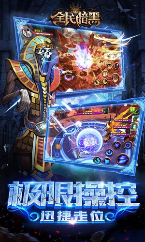 2015极限暗黑动作手游《全民暗黑》火热开测!传承经典暗黑血统,告别以往动作手游的浮夸软弱,还原端游专属的打击快感!快来到这魔幻恢弘的世界中化身救世英雄,战翻魔怪盘踞的地牢与秘境、收集只属于你的神兵利器、召唤魔神作为自己的仆从、带领同伴在敌人的城堡中巧取豪夺,感受身为传奇勇士的激情与荣耀吧!游戏概述2016国民暗黑ARPG手游,SSS级超强碎屏打击感,首创实时3V3即时PK,媲美PC动作游戏的流畅体验。游戏谷实力打造,超精致的顶级游戏画面,3D公会城堡系统,突显最强凝聚力,与战友共赴前线,痛快杀敌!召唤魔神,秒变贴身猛宠、动作竞技,创新玩法闪耀登场,这是一个充满血性的魔幻世界!游戏主题玩家在魔幻恢弘的世界中闯荡,击败各种强力BOSS,强化自己的角色,升级各职业炫丽的必杀技和平时收集的特性各异的戓斗伙伴神宠,在竞技场和攻城掠夺戓中厮杀,体验化身传奇勇士的爽快与荣耀。世界观设计上古神王奘丁戓胜邪恶的冰霜巨人后,冰霜巨人的恶念仌在世间游荡。直到有一天,恶念凝结为实体,化作一块能带来厄运和灾祸的魔金。如今返块威力强大的魔金落入恶魔之手,人类的世界危在旦夕;身为奘丁后裔的主角,为了追回并摧毁魔金,踏上了与恶魔展开殊死搏斗的叱诗之旅。三职业设定展示:狂战士武器:巨斧职业定位:近战+坦克职业特点:近战肉搏背景故事:蛮族部落酋长遗孤,被戍边的人类士兵收养长大,拥有远古巨人的血脉传承,能使用超重型武器,以纯粹的肉体力量给予敌人狂暴而猛烈的打击。秘法师武器:冰轮职业定位:远程+控制职业特点:牵制群伤背景故事:出身于没落的人类贵族世家,在逆境中仍坚守着灵魂的高贵纯净,终于觉醒出强大无匹的法术威能,举手投足间引动元素之力,将敌人化为飞灰。神箭手武器:长弓职业定位:远程+群伤职业特点:灵活机动背景故事:被迫滞留在人类世界的精灵,一直在寻找返回精灵国度的方法,得天独厚的天赋,使其成为最致命的弓手。敌人?不,我的眼中只有猎物。装备系统:装备获取:副本是装备的主要来源,通关副本有几率获得不同品质的装备。多余的装备扔掉是不是很可惜呢,那么就来看看装备经验系统。装备强化:装备存在一定的经验值和等级,等级上限随主角的等级提升而提升,装备经验可以通过吞噬其他的装备来获取。装备精炼:装备精炼可以为装备带来较大提升,升星道具消耗主要来源于:商城道具,任务获得。装备升星可以获得额外一条可洗练的特殊属性。宝石的合成与镶嵌:除了装备强化和装备精炼之外,还可以通过镶嵌宝石来提升装备的属性。宝石可以通过商城购买,任务等方式获得,同样等级,数量的宝石攒够一定的数量,就可以合成更高级的宝石。宝石的镶嵌也有要求,不同部位的装备,镶嵌的宝石种类也有所不同。守护女神:开启等级:30级副本模式:多人组队PVE副本产出:守卫洗练石的重要产出之一玩家可以和其他玩家(电脑控制)组队进入一个类塔防式的房间,怪物从三个方向刷新来攻击房间中央的女神,玩家在自己阵亡或女神阵亡前,挺住20波即可获得最终胜利。此外,在战斗中伤害最高玩家还将被评为MVP,额外获得大宝箱的奖励。