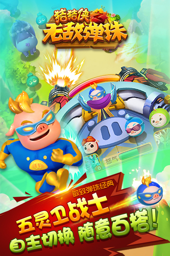 《猪猪侠之无敌弹珠》是一款卡通迷你弹射游戏。玩家作为指挥官,控制弹珠击杀怪物,帮助猪猪侠保卫家园。精品IP,猪猪侠、菲菲、超人强、波比、小呆呆,原创人物技能齐上阵;玩法新奇,“弹珠&弹弓”结合,回味经典,乐趣无穷。操作简单,小白上手无负担,弹珠弹指间运筹帷幄。一波波怪物逼近,是要机甲变身触发技能?还是积蓄力量秒杀?或者加固要塞系统?每一次选择都在调动着你全部的神经,紧张有刺激。劲爆新游:猪猪侠之无敌弹珠震撼发布。猪猪侠之无敌弹珠设计于同名人气动漫《猪猪侠》,一款多功能休闲弹珠类游戏。各大经典角色变身弹珠,效果绚丽,同时加入原著向精彩剧情,喜欢《猪猪侠》的朋友们走过路过可千万不能错过。不同于一般的弹珠游戏,猪猪侠之无敌弹珠新增许多功能,可升级人物,强大基地,抵御强大外敌。融入猪猪侠等经典角色改造弹珠,形成花样弹珠技能,添加机甲变身,升级基地,通关剧情,绝对让你目不暇接,眼花缭乱。特色玩法经典弹珠:同名动漫《猪猪侠》的经典角色再现,纷纷化身成设计技能各异的弹珠。猪猪侠的翻倍蓄力弹,波比的一发五弹,小呆呆的群体减速弹,菲菲的群攻弹,超人强的眩晕弹,每一种弹珠都有绚丽的效果和特色的使用。弹珠蓄力与释放间,带你体验极爽快感。培养系统:猪猪侠之无敌弹珠突破障碍,不止局限弹珠玩法,更增添纷呈的培养系统。不断升级飞船,强大自身;升级要塞,打击绚丽;升级副炮,填充自己弱点。每一次升级都能带来强大的改变,感受一步一步变强的快感。机甲变身:融入经典强大机甲,铁拳虎,火焰鹤,灵木猴,石甲熊,冰封鹿五大强者莅临。变身伴随强势全屏技能,打击一切视线范围内的敌人。震撼的视觉,威猛的形象,无限的心灵震撼大概也就不过如此了。刺激闯关紧密的情节,生动的故事,助你上阵与强势打倒黑暗势力。游戏以《猪猪侠》为题材背景,重现原著情节里,更加上丰富的游戏道具辅助,多样化的游戏关卡拥有独特的关卡任务。就用超强的操控,去帮助猪猪侠控制力度和方向来消灭各种入侵的怪物吧。