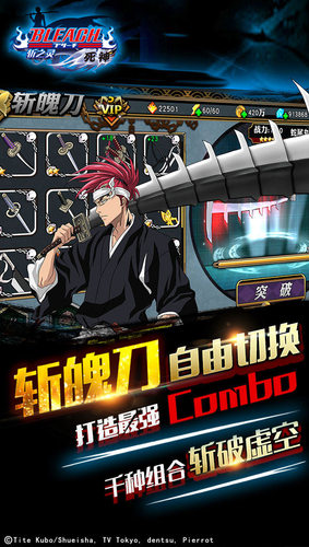 DeNA倾力奉献,日本国民动漫《死神》在中国的首次正版授权手游《死神-斩之灵》横版卷轴ACT巨作,握紧你手中的斩魄刀,创造属于你自己的死神之路!【游戏特色】1、独创斩魄刀切换玩法:每把斩魄刀都是一种崭新的战斗体验,面对强敌选择不同战斗类型的斩魄刀将助你在战斗中占得先机!2、收集灵魂羁绊:百人以上灵魂人物,完美展现原作角色关系网,同时装备灵魂产生的羁绊再使战斗体验UPUPUP!3、经典动漫角色还原:无论是坚韧的黑崎一护,冷酷的日番谷冬狮郎,亦或是搞笑的布偶魂,配合原作声优,完美还原原作经典场景!4、轻松游玩:你再也不会为了没有时间而对ACT敬而远之,智能自动战斗,快捷的一键扫荡,尽可能的解放你的双手,将每天最重要的时间投入到关键的战斗中去!