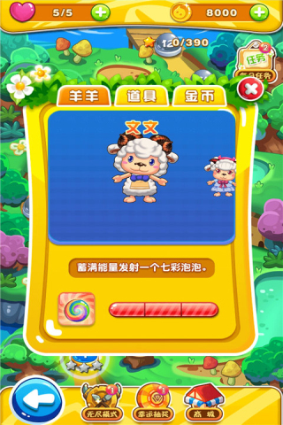 这是一款泡泡射击的经典游戏,可爱萌羊萌萌哒。既有角色购买、非常丰富的关卡、还有超级多的道具可以使用,快快来体验吧。