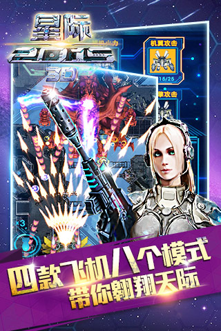 《星际2》是一款以星际飞行、高科技文明为题材的竖版射击类游戏,游戏场景采用全3D制作,炮弹打击粒子效果华丽,打击感强烈。并且,游戏采用了java引擎开发,展现出超流畅的手感、超华丽的弹幕、超爽快的升级、最新潮的战机合体,最新特色玩法,让玩家体验每架飞机的用途,这些都将带给玩家最佳游戏体验!