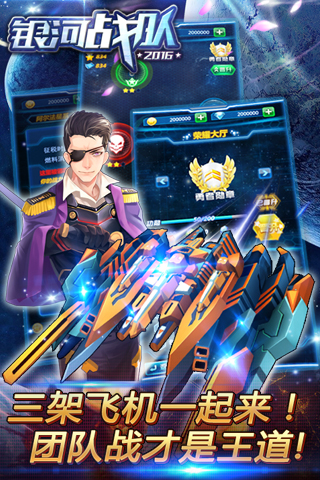 《银河战队2016》是一款竖版飞行射击类游戏,玩家作为战队统帅,组建自己的战队,灵活运用领军者和天空战机组合,在浩淼的宇宙之中,击败外来入侵者,保卫银河系。游戏中创新的引入了机队一同出击的玩法。玩家战斗中可以根据战况不同选择合适的战机。游戏操作采用经典的手指触屏操控,轻划手指,战机划破苍穹!Boss追击,盗梦空间,多种特色玩法让您爱不释手。弹幕丰富,战机繁多,炫爆的场景让您流连忘返!