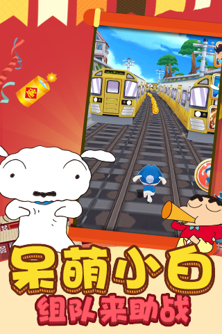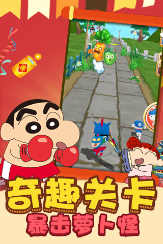 《蜡笔小新3D大冲关》又有全新玩法,小白接力奔跑扫清一切障碍!拯救不开心!野原新之助带你体验最具颠覆性的闯关之旅!耳熟能详小新萌音,脍炙人口的小新语录,萌逗捕鱼的新玩法,更多独一无二的元素将带给玩家前所未有的新鲜体验。游戏场景精致细微,仿佛置身于热闹的街道中飙车竞速,徜徉于乡村田园讨伐精灵,在冒险的旅途中带给你前所未有的开心酷跑!全新捕鱼争霸模式乐趣多多,漫天完美让小新大呼过瘾!一