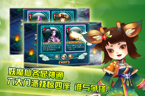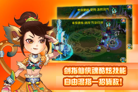 重磅仙剑风回合制策略手机网游,国内首创APC功能丰富社交!无商城模式打造中国第一免费手机网游!魔族能挡千军犯,仙族仗剑傲人间,妖族魅舞自称天的三大职业,六大门派风格各异,独树一帜,任君选择。丰富装备终身享用,绚丽技能震撼夺目,宠物过百随心搭配,仙禽灵兽任您坐骑。更有各种小游戏轻松怡情。