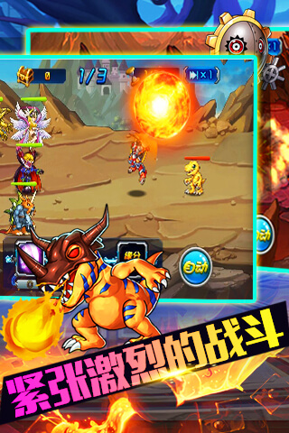 数码宝贝GO!GO!GO!与数码兽们一起战斗,收复数码世界,打败极恶魔王,迎来数码世界的曙光!===经典回归再次开启冒险旅程===亚古兽、加布兽、巴鲁兽、比丘兽……经典形象应有尽有,能让你感受到最原汁原味的数码世界,最真实的数码战斗!===终极进化一起拯救世界吧===幼年期-成长期-成熟期-完全体-究极体华丽进化。只要你有实力,完全可以将你的数码兽进化成机械暴龙兽、兽人加鲁鲁、花仙兽、伽楼达兽、超比多兽……称霸数码世界!===抢占能量塔我要圈地圈钱===结合LBS定位技术,轻松寻找附近伙伴,抢占能量塔获取更多游戏资源。游戏、勾搭一样都不会少。===劲爆AR技术真实捕捉体验===虚拟结合现实,拿起手机就能采集材料,更能能捕获心仪的数码兽哦~===自动战斗我就这样静静地看着你===有一种战斗叫你打着,我先看看,排兵布阵之后只需要静静的看着就好。