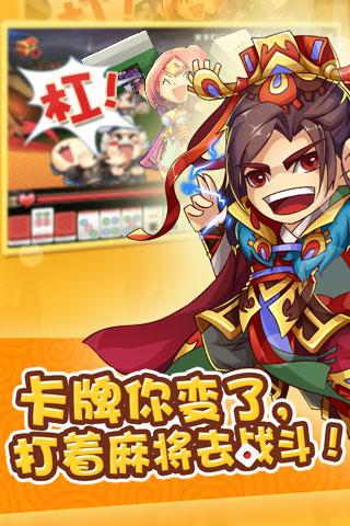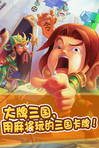 《大牌三国》是用麻将玩的三国卡牌手游!产品特色:创意战斗方式:用打麻将来让武将输出伤害,代替纯数值PK,战斗更具操作感爽快战斗节奏:摸三张打三张,名将技能出老千,轻松快速胡大牌丰富卡牌策略:战前选将布阵,战中出牌换牌,战后收集养成轻松搞怪剧情:贱萌画风台词,幽默三国剧情和人物设定