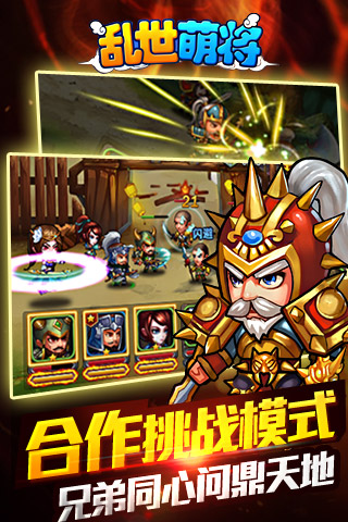 《乱世萌将》是一款三国题材的横版动作卡牌游戏,Q版卡通风格,人物炫酷,特效华丽,武将的动作表情丰富多变!众多的武将,不同的搭配,不同的战术。实力不仅仅由等级决定!上手简单,只需指点屏幕一二;战法深邃,如何排兵布阵,展现你的大将风采!每个武将独一无二的神器系统,围绕神器提升实力,未来还将开放更多功能,打造你独一无二的武将阵容!