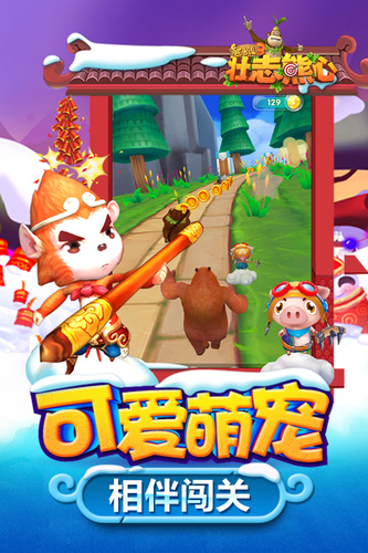 ★熊大熊二萌动来袭,与熊迷们相约跨年!★极致高清3D画面,狂拽酷炫萌宠坐骑,更多玩法尽在全新《熊出没3壮志熊心》!鸡年新春将至,超时尚超前卫《熊出没3壮志熊心》陪你开心过节,为各位熊友们带来琳琅满目的新年礼物!超高颜值熊大携手萌宠出击,打造超震撼超好玩跑酷大作,带你体验最具颠覆性的冒险之旅!