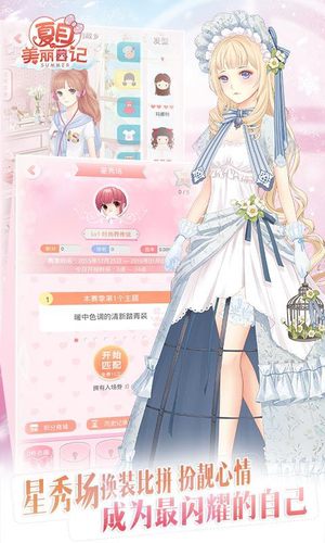 2016年暖心恋爱换装手游《夏目的美丽日记》!秉承日系赛璐璐画风,创新的恋爱约会模式,独有情侣换装CP感爆棚!千面男主暖心邂逅,牵手谱写甜蜜恋曲;知名声优倾情加盟,温柔发声诉说属于你的我的初恋;更有不撞衫的各色搭配,开启多样化专属衣柜。华丽蜕变化身公主,你值得被疼爱。【人气声优加盟倾情献声】花千骨原音加盟,轻柔和缓的音乐中,傲娇的王子音、元气的少女音、清朗的正太音,优雅的贵族青年音,感受着被温暖气息包裹着的熟悉声音在耳畔呢喃低语,让人忍不住面红心跳,在寒冬为您带来不一样的暖心关怀。【约会男神缔写恋爱法则】“傲娇”、“暖男”、“总裁”,究竟谁是你的菜?打破传统单向恋爱任务,特色的互动恋爱玩法游戏,男主不仅可以和您对话,更会不定时发送约会邀请;恋爱中的他贴心又会吃醋,是男神也秒变能男神经!【身临其境踏上奇幻旅程】游戏中拥有不同风格的城镇,崇尚田园清新、热衷休闲时尚、无限东方韵味,更有的则要求亲近自然淡定神秘。换上喜欢的着装开启每个城镇的旅程故事,更将遇到形形色色性格迥异的神秘暖男,写下专属于您的夏目美好恋曲!【打造属于你的我的初恋】情侣服饰私人订制,打造夏目专属couple!游戏里所有服装都以绝高精度绘制,大到整体造型,小到细节配饰,无不一一刻画;休闲时尚、古装和服、哥特复古,童话梦幻,涵盖所有风格,视觉盛宴堪比秀场。【私人定制收集专属衣橱】亲手收集,私人订制!独享自己专属的衣橱,百变DIY妆容、千套精美服装,万种搭配风格,更有宫廷风、宴会风、古装、星座等风格套装闪耀登场,还能亲手制订的属于自己专属的最美婚纱,记录下最美的回忆。客服QQ:4009393333客服热线:4009393333