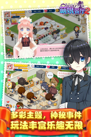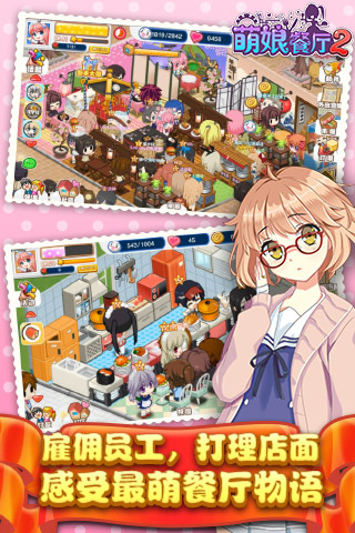 店长大人欢迎回来,您的萌娘餐厅已经准备好了~《萌娘餐厅2》是一款二次元风格的模拟经营及育成手游,融合了大量时下流行的动漫元素。游戏中你将作为店长,在萌萌的小助理陪伴下经营你的萌娘餐厅,从烹饪料理、研发、布置小店,到雇佣员工、宣传、处理外卖订单、举行派对,所有事务均由你亲自安排,还可以和身边的朋友们进行丰富的社交活动,体验梦幻而又真实的模拟经营,共同书写妙趣横生的餐厅物语。游戏介绍店长大人您终于出现啦,咱们的餐厅马上就要开业了哦,快来和我一起准备吧!万众瞩目的Q版二次元模拟经营手游《萌娘餐厅2》国服版本马上就要与大家见面啦,届时安卓用户可以通过及其他各渠道下载到游戏安装包。《萌娘餐厅2》集模拟经营、卡牌收集、养成于一身,画风可爱、玩法丰富、制作精良。玩家在游戏中将作为新上任的店长管理餐厅,并一步步将其发展壮大。在体验经营餐厅的畅快感的同时,还可以培(tiao)养(xi)可爱的二次元萌娘,让疲惫的你切身体会到世界的善意,享受现充一般的轻松欢愉和巨大的成就感。餐厅经营是一门艺术作为一款模拟经营类游戏(SIM),《萌娘餐厅2》具备了传统SIM的一切要素。玩家需要悉心照料自己的餐厅,烹饪料理、招揽顾客、雇佣店员、布置店面,虽无需太过费心,却也不能放置不管。游戏中有多种装修风格可供选择,包括了中式、欧式、日式等等,很大程度上解决了玩家众口难调的难题,让所有人都能设计出自己喜欢的样式。数日艰辛只因你一笑而消解《萌娘餐厅2》的一大特色是包含了近百位人气动漫角色,死宅们终于不用眼巴巴地对着动画舔屏幕了!在游戏中玩家可以与喜爱的人物近距离互动,摸头、拍照、训练、送礼物、换装……玩家的行为还会让他们给出不同的反应。此外在招募时会有小概率获得稀有的第二形象,时不时给你一个惊喜,同时又为有收集癖的玩家创造了一个更高远的目标。弹幕狂欢与基友一起High弹幕系统是《萌娘餐厅2》的一大创举,虽然早已成为视频网站的常客,但出现在游戏中的弹幕还是屈指可数。拜访好友的餐厅时即可发送弹幕,和所有人实现全屏互动,将弹幕系统融合进模拟经营的玩法中,既不显违和又充满乐趣,极大增强了交互性。此刻我的心情一定是这样的:真开心,又可以和小伙伴们愉快的吐槽了(*′?`*)~宣传系统攻略介绍外出宣传是经营之外的辅助玩法之一,通过派遣闲置的店员去宣传,耗费一定的体力和时间,获取额外的金币、经验以及各种道具。宣传的最主要目的是解锁特殊顾客,目前总共开放了两个大地图,每个地图5个小区域,每个区域都可以发现两名特殊顾客。解锁之后这些角色就会以顾客的身份光顾餐厅,之后是要做支线任务还是要攻略就随你玩了~宣传也是获得食材的主要方式,除了任务、活动的奖励外,只能在神秘商店购买。对于消耗量大而又不易获得的食材来说,通过宣传途径获取就显得十分必要了。在宣传时还有几率捡到一两个钻石以及礼物、体力药等道具,同时也能回复少量人气值,偶尔运气好还能得到个家具。如果不想耗费体力,也可以派遣借来的店员去宣传,但也需要该店员的体力上限大于所需耗费的体力才能成功开始哦。抽卡与奉纳的异同之处介绍萌娘餐厅2中获取店员的主要方式为抽卡和灵梦的奉纳,四种抽卡方式的区别显而易见,而奉纳和抽卡又有什么不同呢?下面就来为各位解答这个疑惑。四种抽卡中,金币召唤多数情况下抽到的是低星级角色,基本用作补足狗粮;宝石召唤耗费钻石较少,但高星级店员几率也偏低,属于拼脸玩法;大多数人应该还是倾向于高级召唤,保底3星,4、5星概率也不小;友情召唤则会抽出一些其他三个卡池里没有的角色,但高星级概率相对还是差一点。相比于高级召唤的150个钻石,灵梦奉纳的价格直接翻了一倍,不过这里去除掉了普通抽卡能获得的大部分角色,只有新近加入的角色、友情抽独有的角色和所有卡池都抽不到的一些特殊角色(例如saber、炮姐)、解锁的特殊顾客,对于玩腻了高级抽卡的玩家们来说还是可以新鲜一把的~稀有形象的获取途径介绍《萌娘餐厅2》中的角色除了平时统一的工作服打扮,还有另一种较为稀有的形象,不仅卡面炫酷、自带特殊装扮,体力值也比一般的店员要高出不少,下面就来说说这种稀有形象的获得方式。最常见的途径即抽扭蛋,脸好的情况下四种方式都能获得,但一般来说还是高级抽卡最容易出货,同理还有灵梦的奉纳,虽然价格翻了一倍,但能得到一些比较少见的角色。新手大礼包是最稳定的获得方式,6块钱必得一个稀有形象,不过每个账号只能购买一次。剩下的就是活动各种送,某些卡池里没有的角色就只能通过参加活动来获得,或者是后期的vip礼包,比如樱初音和炎发夏娜。店一般会放出所有稀有形象角色,如果实在脸黑不出货,去借个回来放店里舔一舔也不错,总比没有强~贪财巫女的奉纳箱的攻略介绍很多童鞋不知道博丽灵梦的奉纳箱是干嘛的,下面就来介绍下灵梦的四个奉纳箱都是些什么玩意,以及是否值得购买。1.万宝箱不知道为什么总想到万宝路……咳咳,能抽到各种杂七杂八的道具,主要是体力药、经验书、各种招财喵、召唤券、食材、金币、友情值、礼物……真的是除了剩下三个之外啥都有了,一般只要不是脸黑抽到5个心、300金币,基本是稳赚不赔,作为唯一一个金