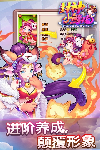 【游戏介绍】1.Q版萌系人物角色,天界小鲜肉比比皆是;2.独创八方位战斗模式,16宫格排兵布阵,运筹帷幄,尽在掌控之中;3.明星神将养成系统,开办自己的经纪公司,在娱乐圈掀起腥风血雨;4.炒鸡逗比的故事情节,脑洞不断,爆笑不断,精彩内容应接不暇;5.真实美女配音,环绕立体音体验身临其境的感觉(我才不知道什么是娇喘(?????))。