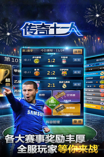 2017年独具情怀的足球经理手游《传奇十一人》为真球迷量身打造,专业收录雅辛、李惠堂、梅西、C罗、贝尔和内马尔等超过3000名传奇及现役球员真实数据,数十位活跃足坛的知名教练供您选择,助您一展足球经理才华。自成一派的联赛、足协杯、冠军杯和联盟杯的特色赛事体系,球星生涯、传奇开场和荣耀之路等骨灰级球迷热衷玩法,丰富的战术选择、生动的比赛过程、真实的豪门主场令您身临其境,尽享足球经理游戏魅力!