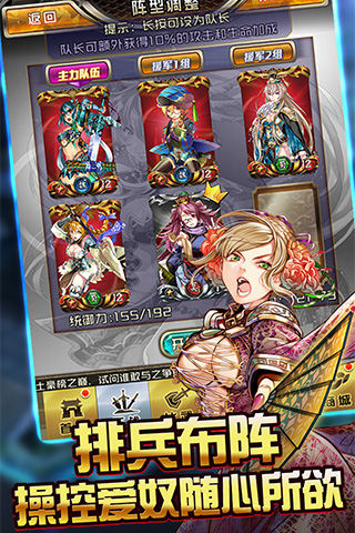 《撕暴魏蜀吴》讲述了一群三国英雄穿越时空来到女儿国度,各位武将君主也相继变成女儿身。在这神奇的世界,给位主公将再一次进行权贵之争。。。,采用了现有游戏市场中主流的点击的操作方式,并结合IOS平台的特点加入了一些滑动、长按操作,配合玩家的日常操作习惯。使玩家在游戏中可以高效的搭配卡牌、培养卡牌、挑战副本等一系列操作。