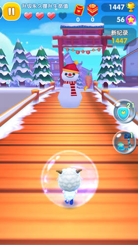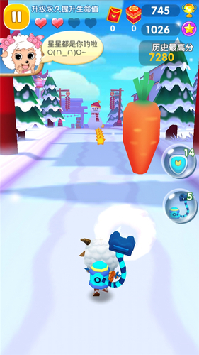 甜美圣诞,《喜羊羊快跑》全新三星宠物“暖暖”梦幻来袭!传说在青青草原,有一只紫色的猫头鹰“暖暖”降临羊村,它调皮捣蛋,萌气逼人,一双坚硬的翅膀犹如大电扇,威力如飓风来袭!在游戏中,它会陪你尽情跳跃、飞翔、打败灰太狼!还有全新排行榜模块,线上分组PK,一战为快!在这里,不仅能体验到极速的运动快感,还有荣誉榜单、丰厚奖励等你来侵占!奔跑吧!小羊们!快来跟“暖暖”组队,打败灰太狼!