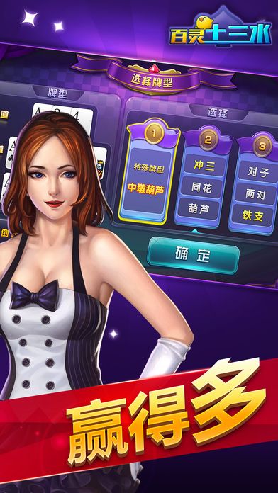 做人要做人上人,玩牌只玩百灵十三水!百灵手游年度巨献,众多十三水游戏高手齐聚,精彩不容错过!十三水是一款极具传奇色彩的棋牌游戏,主要流传于中国华东华南一带!曾经在王晶执导的影片《赌侠2002》,85分钟——88分钟的影片情节中,讲述的就是有关十三水的内容。相传二战时期,苏联装甲师指挥官们曾经因玩十三水而拟定了作战计划,最后获得了胜利。这就是一款具有传奇色彩的棋牌游戏!