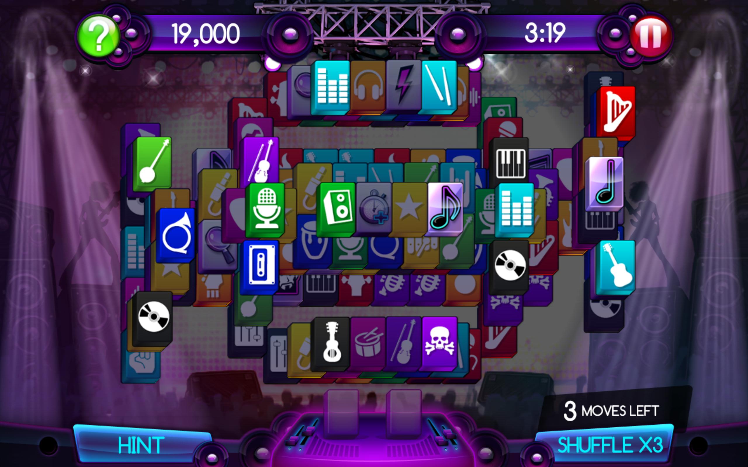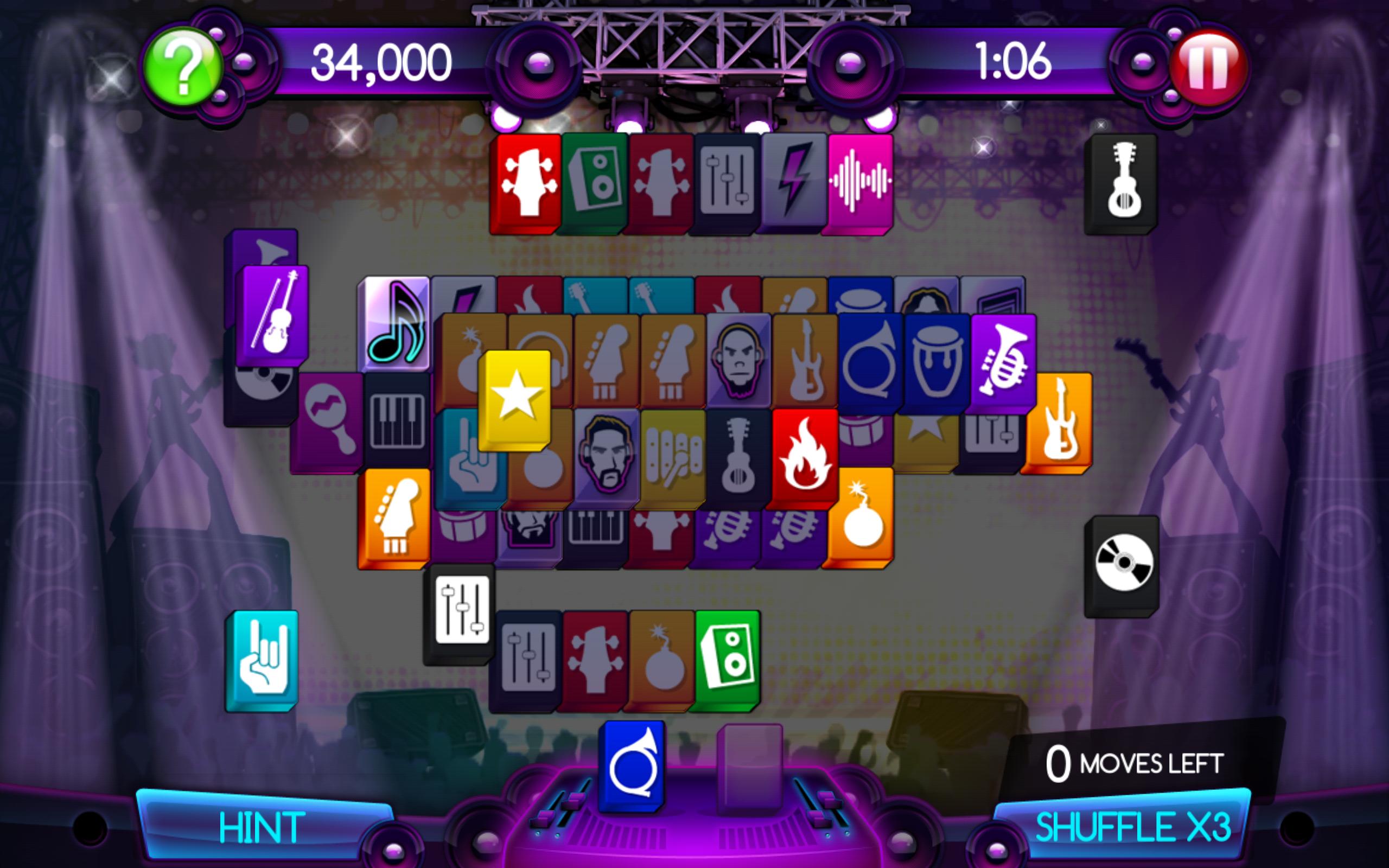 摇滚对对碰(RockMahjong)是一款玩法类似于麻将消除的摇滚对对碰游戏,游戏中所有相碰的元素都用了各种形式的乐器符号表示,整个场景搭建在流光溢彩的舞台上,紫色的主题画面看起来还挺漂亮的,游戏2011年上架,到现在为止还是首次限免,并且进行了更新,感兴趣的同学可以试试。摇滚对对碰游戏特点