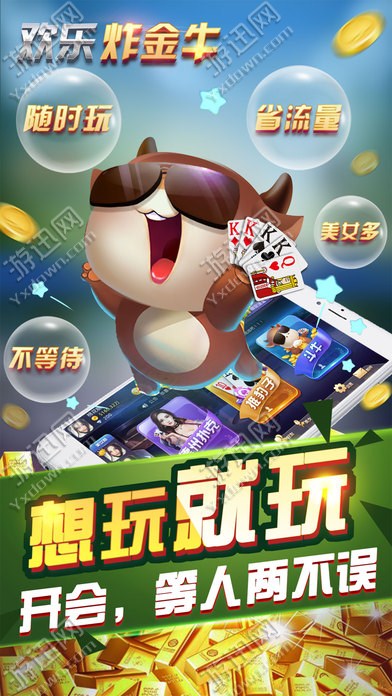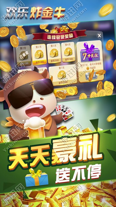 欢乐炸金牛修改版游戏中玩家可以体验到是十分刺激的娱乐炸金牛棋牌游戏,炸金牛又叫做炸金花,是非常刺激精彩的民间娱乐棋牌游戏,快来下载玩耍体验吧!游戏平台首款实时对战棋牌手游!全民在线牌技PK,最纯正经典玩法+最刺激癞子玩法,还有欢乐挑战赛火热来袭!您可以与百万游戏玩家同桌竞技,还可以和好友拼倍数、拼财富!在游戏中感受到无处不在的欢乐!在经典的基础上加入了很多创意的玩法,非常值得大家的期待,在传统玩法上加入了社交元素,娱乐交友两不误,喜欢的玩家不要错过。欢乐炸金牛修改版游戏特色