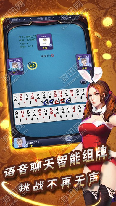 拱趴五十K修改版这款游戏是将时下在福州非常流行的扑克游戏进行改编的掌上棋牌游戏,游戏规则非常具有福州地区特色,智能化的游戏设计让游戏更加简便有趣,走哪玩哪,还可以在线邀请不同的好友一起pk,非常刺激。这款游戏采用福州地区的游戏规则,2副牌4个人打,对家配合抓分,分多一方获胜。该游戏上手简单,过程刺激,非常适合于休闲娱乐所用,游戏中的画面精致独特,人性化游戏设计,多个游戏,清晰的页面操作导航布局等你来哦!拱趴五十K修改版介绍: