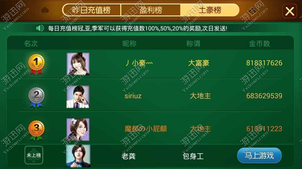 无敌大赢家安卓版是一款能够在安卓手机端上进行的经典炸金花游戏,刺激好玩的炸金花玩法,喜欢的玩家们快加入进来,享受斗智斗勇的欢乐吧!想玩点斗智斗勇的扑克牌游戏?那就赶快加入我们吧,游戏汇聚各地帅哥美女,挑战您的胆略与智慧,多种玩法其乐无穷。玩游戏还送话费哦,更有各种实物大奖等你来拿!界面清新操作简单,休闲放松的最佳选择。完全真人对战,与其他玩家斗智斗勇,体验真正的高手对决!每天登陆送金币,游戏在线时长送金币,只要在线就疯狂送送送!喜欢这款游戏的玩家快来下载试玩吧!