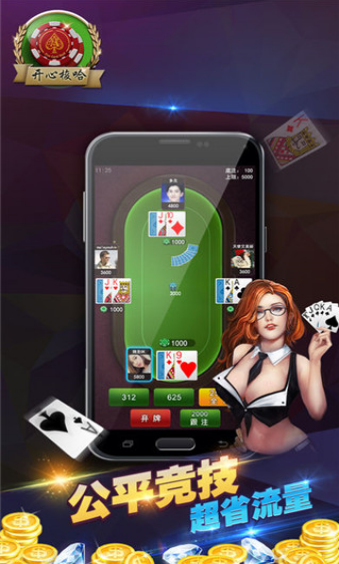开心梭哈作为一款好玩的棋牌游戏,游戏中玩家们可以感受到浓厚的棋牌游戏魅力!喜欢这款游戏的玩家们,赶紧下载开心梭哈畅玩吧!