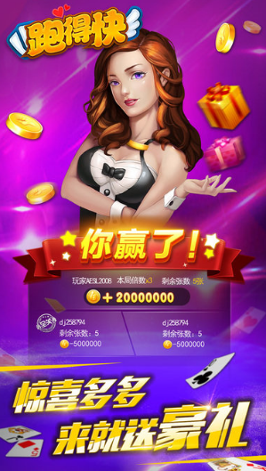 【正宗湖南跑得快】是一款极具趣味的扑克类手机游戏,以湖南跑得快玩法为主,为玩家带来最地道的湖南游戏特色,赶快邀请你的好友,来上几局,比比看谁的牌技更高!正宗湖南跑得快游戏介绍2017倾力打造的正宗湖南跑得快,地道湖南风味,亲朋好友约上几局!朋友约局神器,玩得就是刺激!好友邀约开房,随心安全私密!你来就送房卡,亲朋好友搞起!正宗跑得快,湖南QQ斗地主!万人在线,好友比拼谁跑的快!赢大奖赛,超级大奖等你来拿!欢乐再次升级,免费下载送豪礼!比炸金花好玩,比斗牛更刺激!惊喜多多,来就送金币哦~更全面,更正宗,大品牌有保证。绝对好玩,绝对刺激,尽在最正宗的湖南跑得快。正宗湖南跑得快游戏特色1.玩法正宗,玩家多,随时随地打开手机就能玩。2.首次登陆就送房卡。3.和好友,亲友和老乡一起畅游。