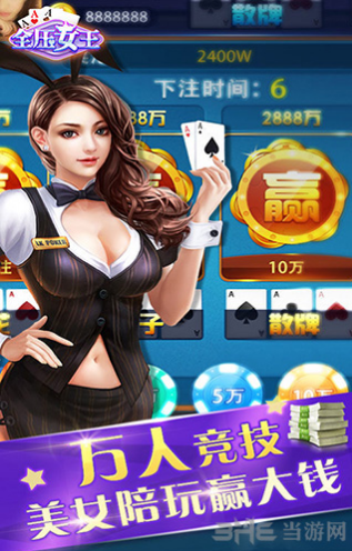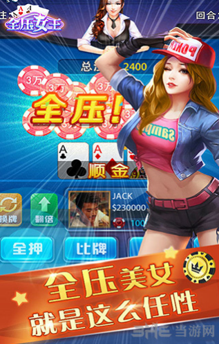 全压女王是一款以极具人气的炸金花为题材而打造的扑克竞技棋牌类手游,游戏在保留了传统的玩法精髓基础上进行了大量的创新改进,使得游戏过程更加富有激情与乐趣,完成屌丝向土豪的惊天大逆袭,赶快下载来当土豪吧!游戏介绍《全压女王》是一款休闲类棋牌游戏,规则简单有趣极易上手,加之其娱乐性极强的特点,受广大棋牌爱好者的青睐。现在不管你是新手,还是资深的棋牌大师都需要考验胆略和智慧,外加上一点小运气。推陈出新的玩法才能俘获玩家的心,游戏保留标准的玩法外,还新增了“淘金场”、“万人场”、“娱乐场”,在此都能体验一把尔虞我诈的刺激快感,下一个赌神就是你!游戏特点1.经典模式:传统经典玩法比拼运气和智慧2.火拼模式:一掷千金豪赌爽,无限投注欢乐多,体验过山车般的刺激3.娱乐模式:玩累了可以来这里休闲娱乐4.时时彩:买的多,赢得多,一夜暴富成就土豪不是梦想5.全免费:应用完全免费