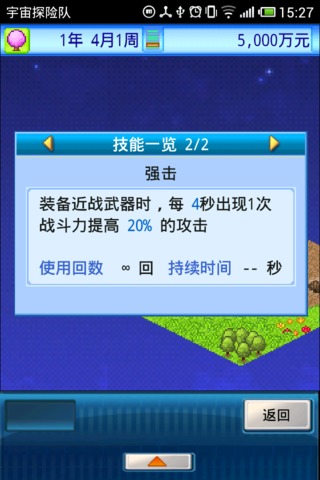 手机经营游戏专业户kairosoft(开罗游戏)又出新作了!!绝对不可错过喔!这是一个以开拓外星领域为主的经营RPG游戏探索未知的大地,并打造受外星人欢迎的星球吧!建设道路和住宅,给住民们创造一个舒适的生活环境吧!在广阔的宇宙中,还有可能遭遇怪兽…如果战胜他们就会得到利于开拓地域的战利品哟!目标:银河第一!